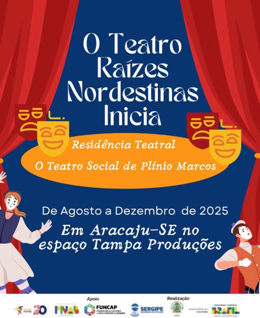A residência será realizada no espaço TAMPA, em Aracaju, com os jovens atores Marcelo Soares e Lucas Rodrigues, do Grupo de Teatro Raízes Nordestinas. O processo segue até dezembro, sob a coordenação do diretor e dramaturgo Raimundo Venâncio e da atriz, cantora e preparadora corporal e vocal Tânia Maria.